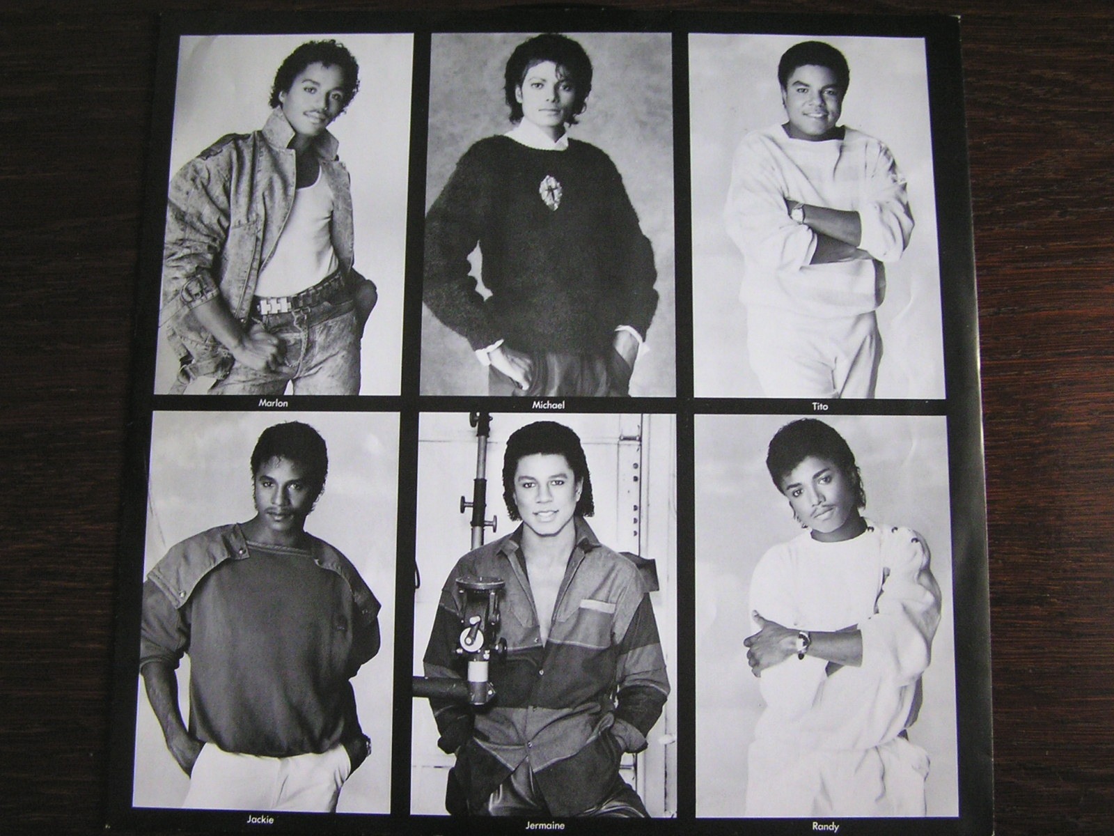 Fotografie vnitřního papírového obalu hudebního alba + Victory (1984) s velkými fotografiemi všech šesti bratrů Jacksonů skupiny The Jacksons + pochází z obrovského soukromého foto-archivu a má status – Fair use.