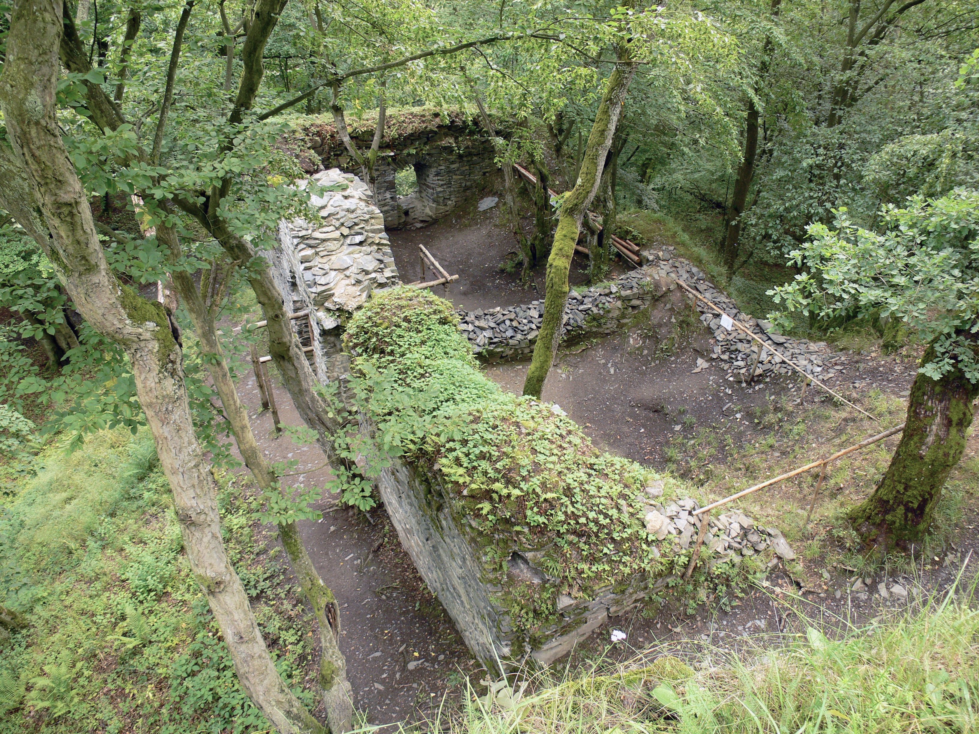 Fotografie + Čeština: Pohled z věže na pozůstatky dvouprostorového paláce.
