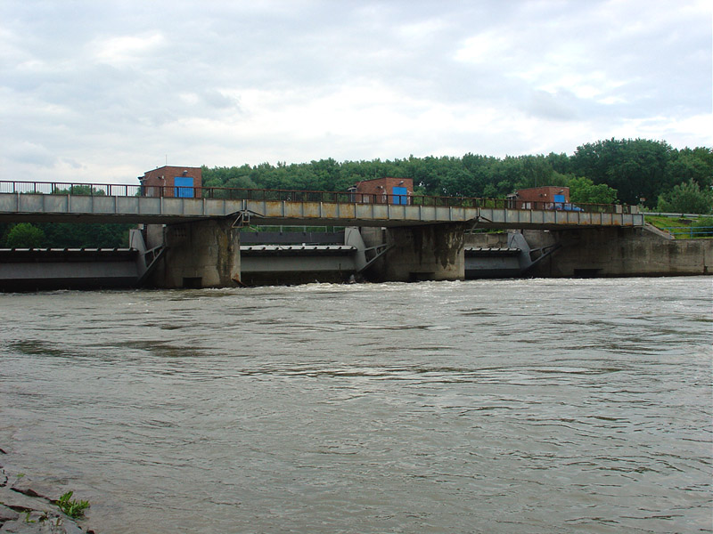 - English: Weir on Morava river in Otrokovice, Czech Republic