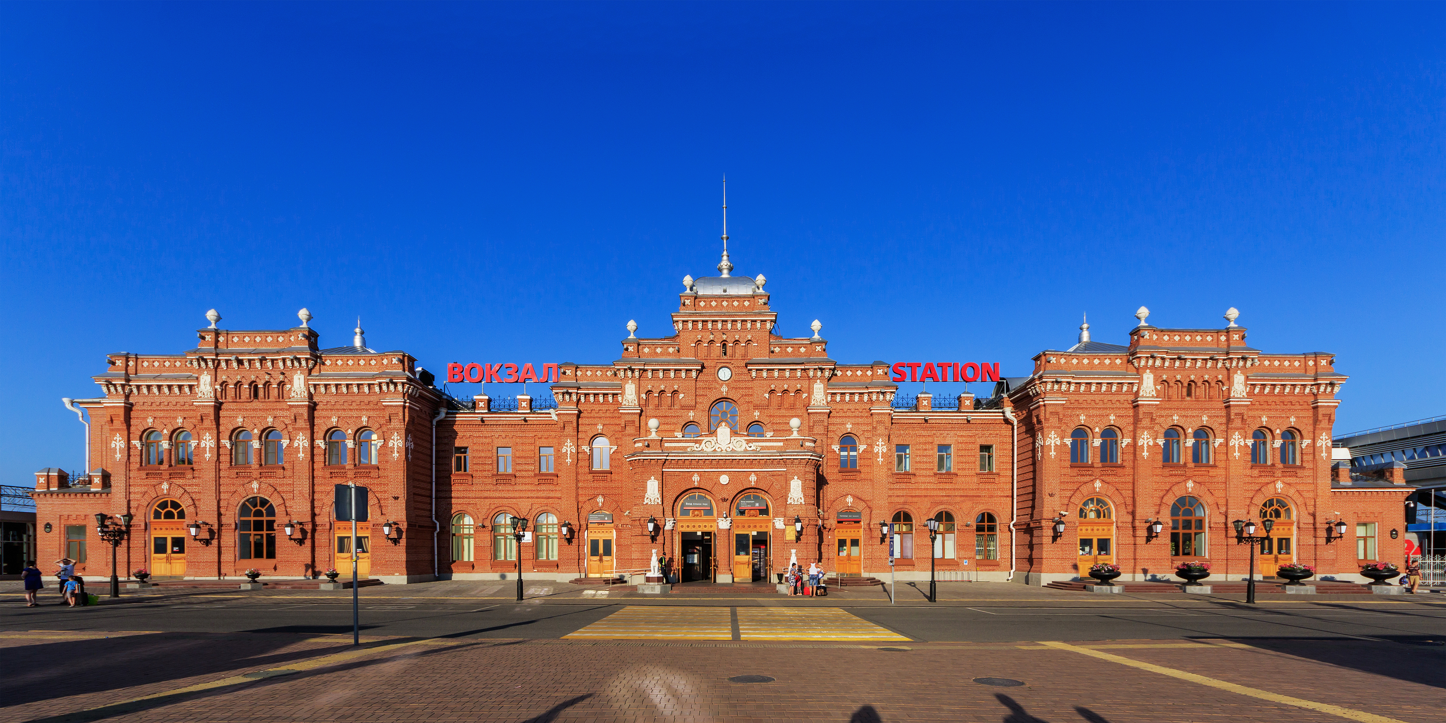 - Русский: Старое здание железнодорожного вокзала. Казань, Россия.