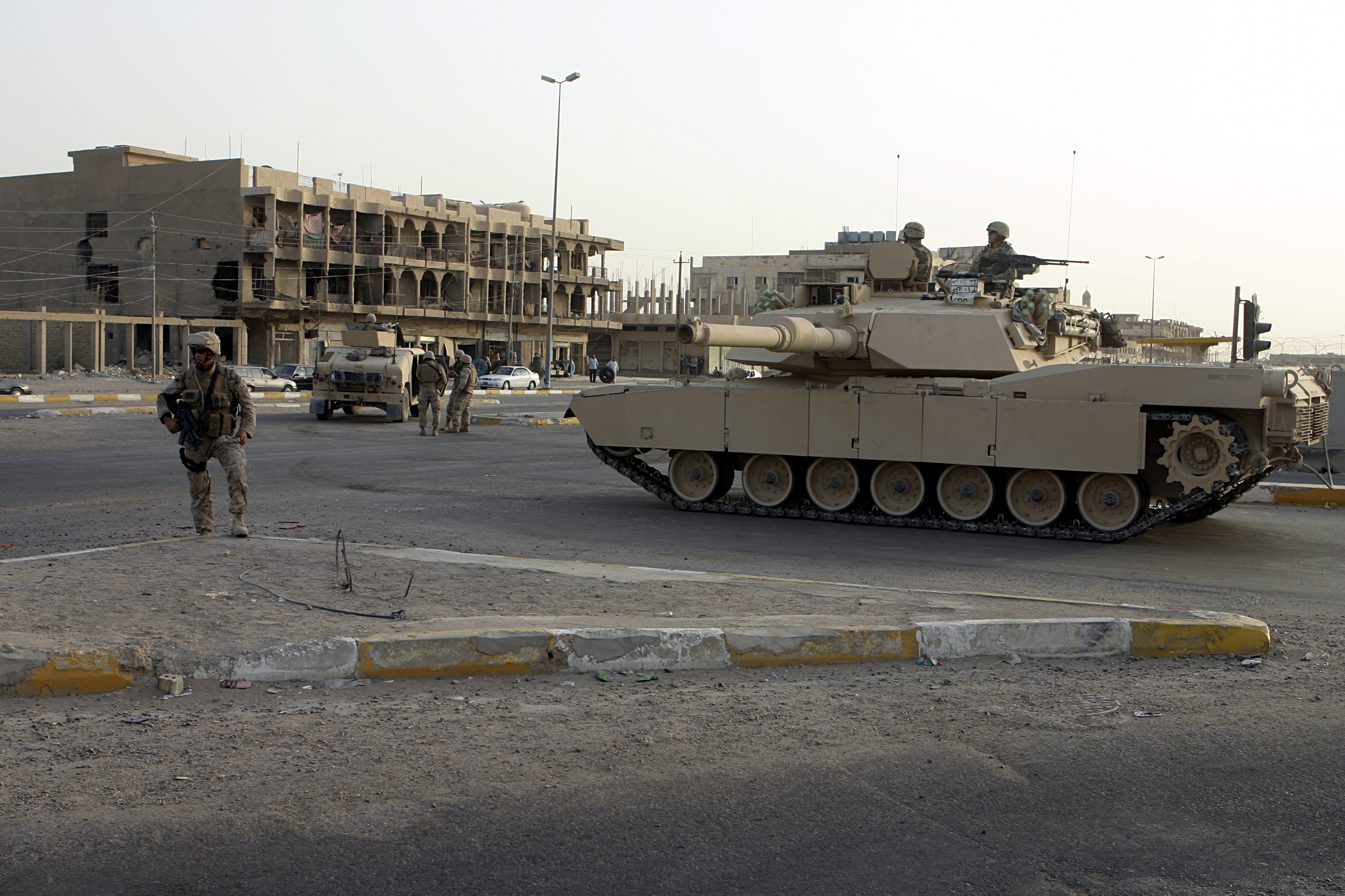 Fotografie + Čeština: Tank M1A1 zajišťující Baghdád.