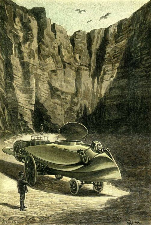 Obrázek + English: An illustration from Jules Verne's novel "Master of the World" (1902-03) drawn by George Roux.