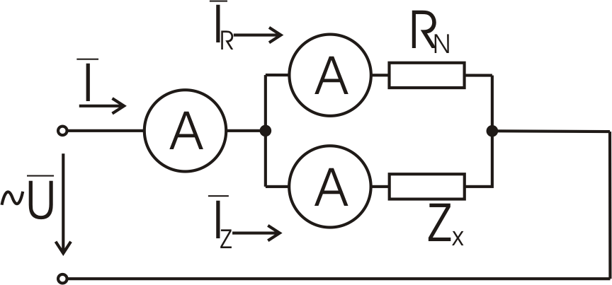 Obrázek + Description: Metoda tří ampérmetrů pro měření impedancí
