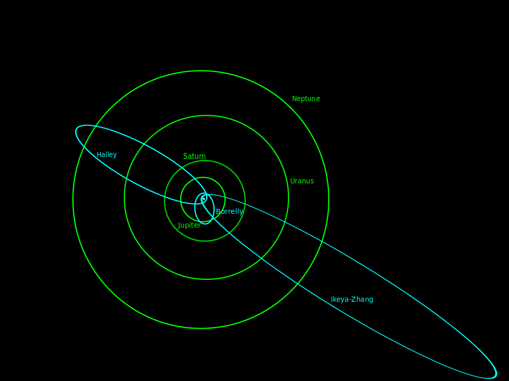 - Orbits of 3 periodic comets: Halley, Borrelly and Ikeya-Zhang. You can verify the orbits at: