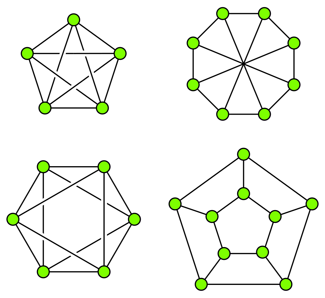 Obrázek + Description: Four graphs that cannot be minors of a partial 3-tree.
