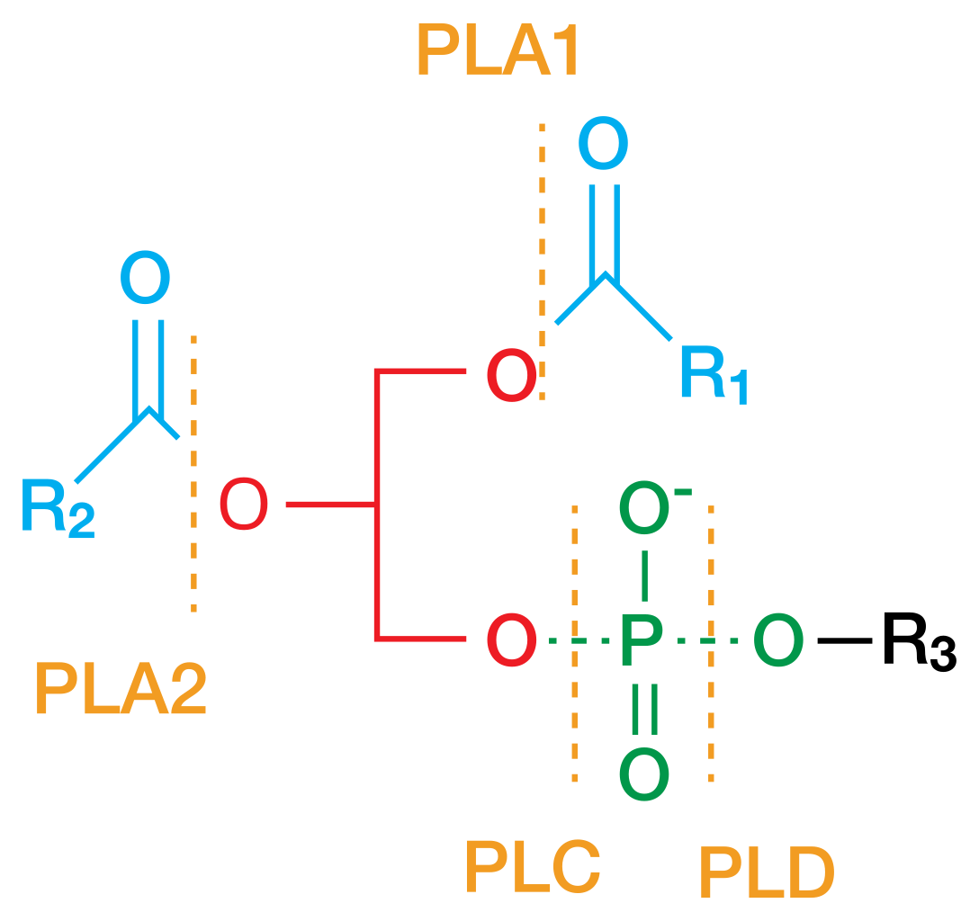 - English: Phospholipase cleavage sites.
