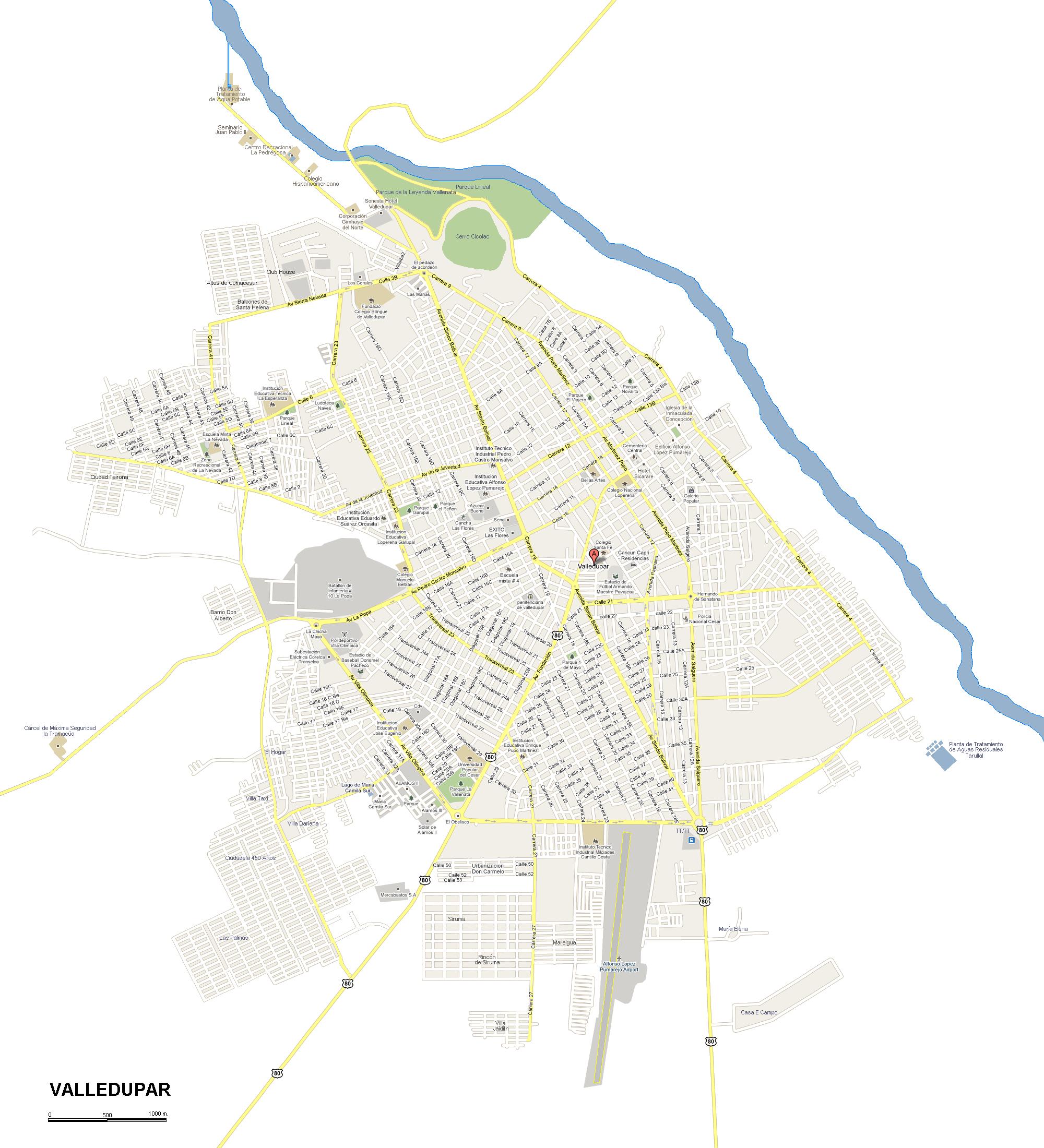 Mapa města + Español: Plano de la ciudad de Valledupar hacia mediados del año 2010.