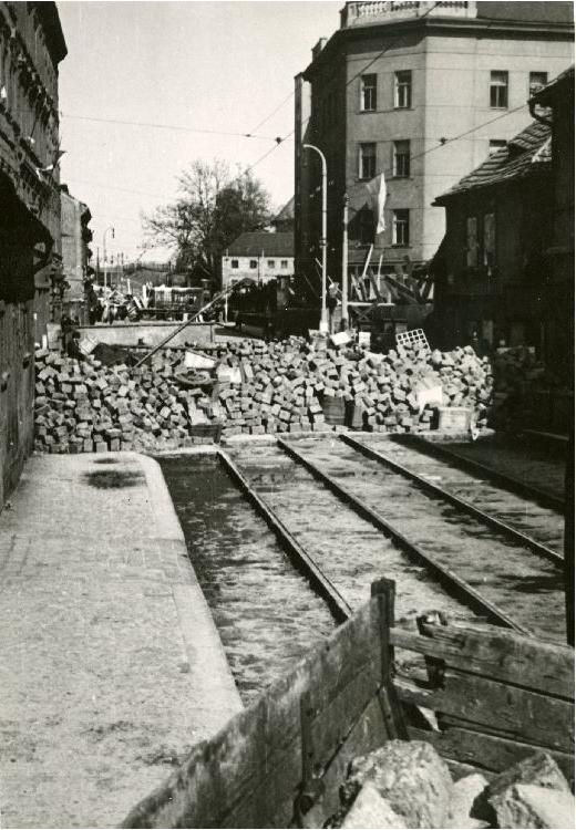 Soubor:Pražské povstání, barikáda u Olšanských hřbitovů.jpg