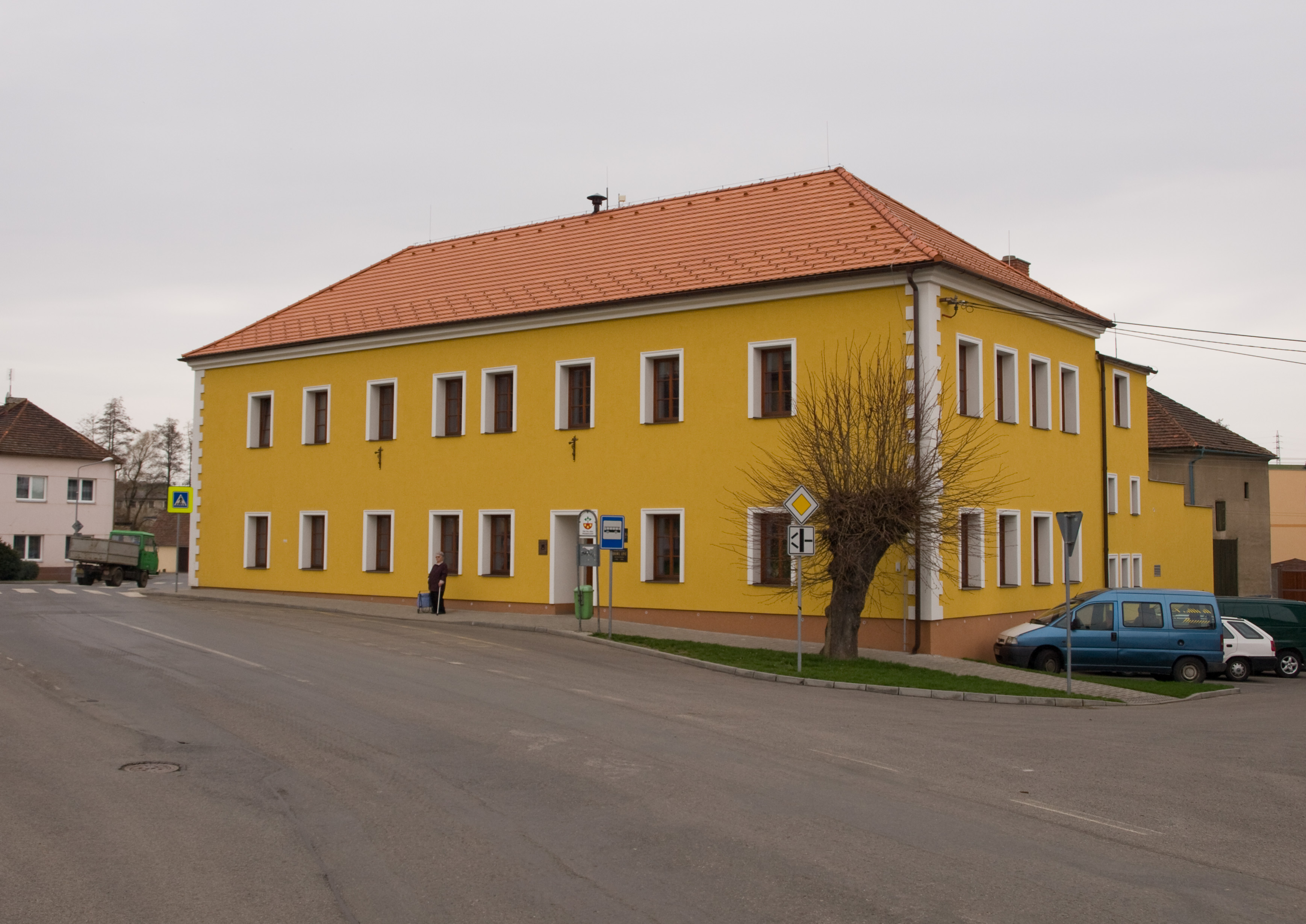 Fotografie + Čeština: Náves, základní škola Praskolesy čp. 104, okres Beroun, Středočeský kraj, Česká republika