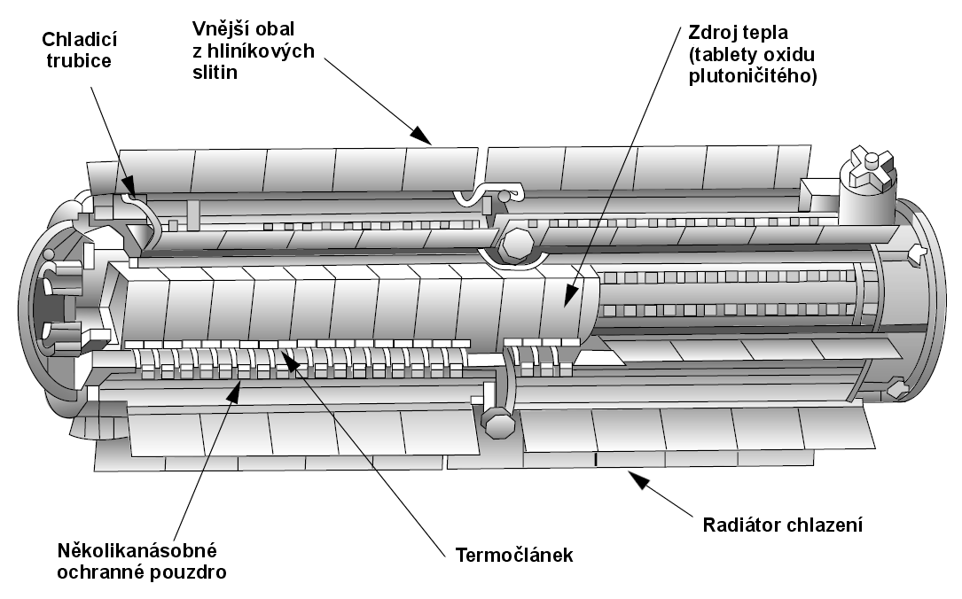 Fotografie + Čeština: Radioizotopový termoelektrický generátor (RTG), schema