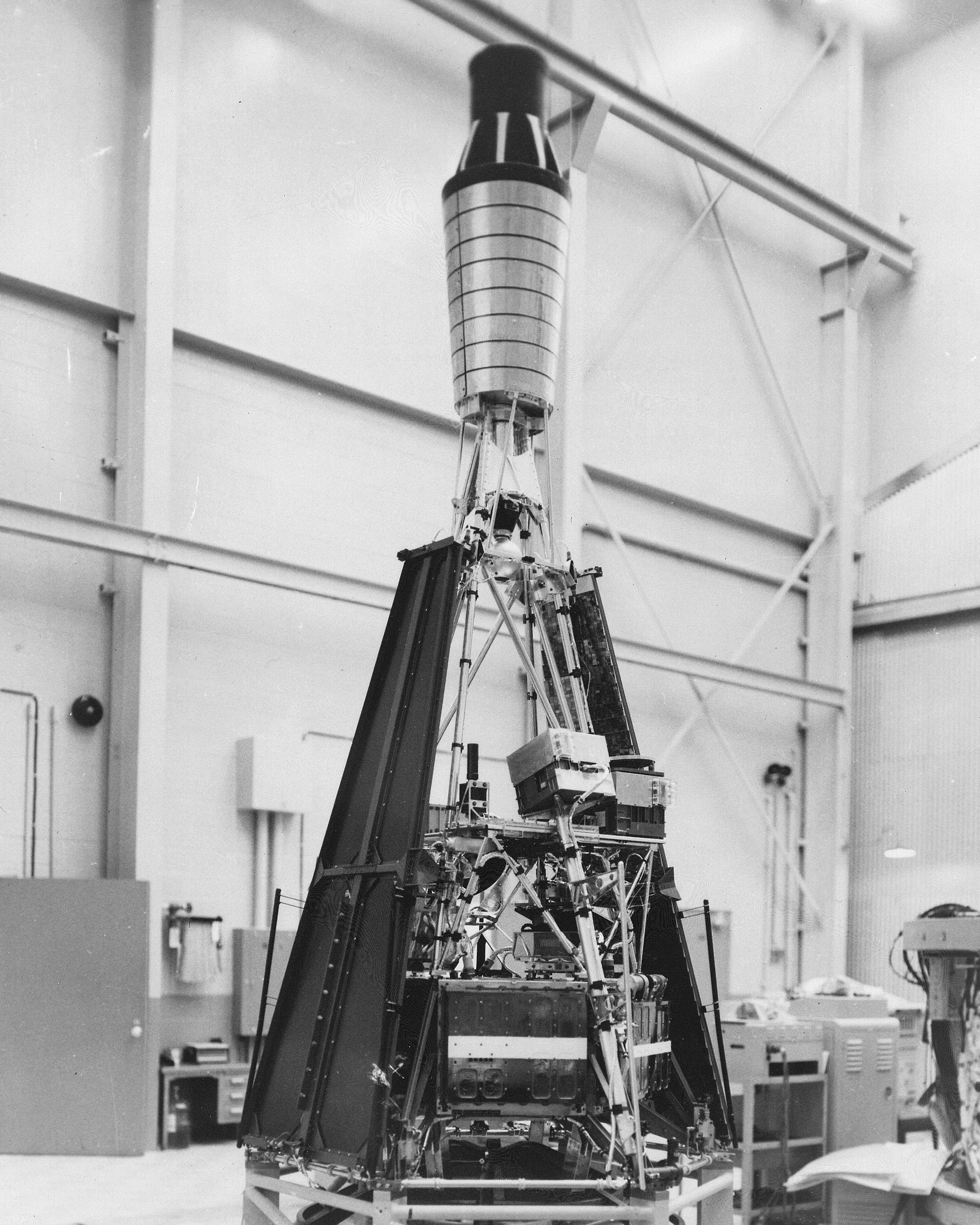 Fotografie + Description: Ranger 2 satellite for use at the Parade of Progress show at the Public Hall Cleveland Ohio.
