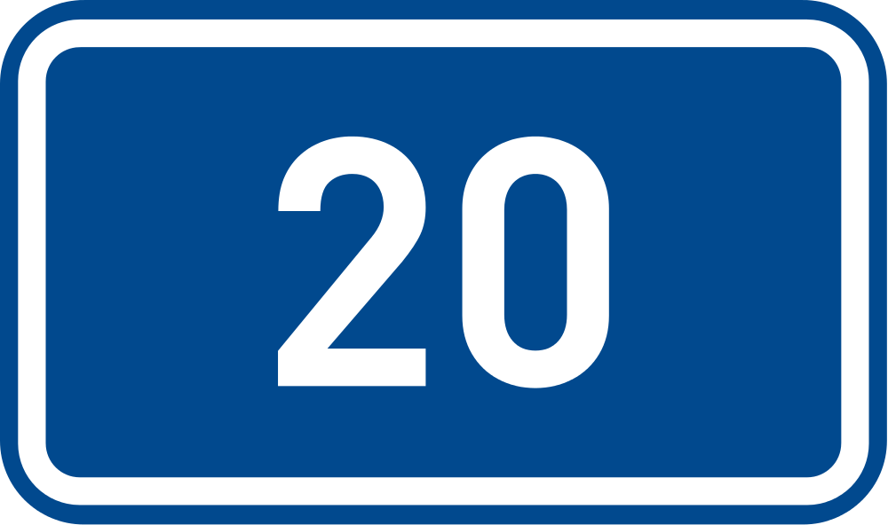 Symbol + Description: Sign of 1st class road 20 in the Czech Republic