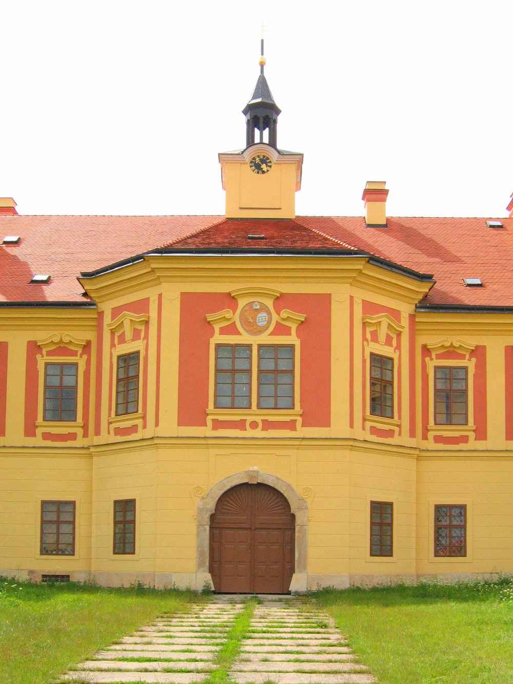 - Čeština: Zámek Sloupno, okres Hradec Králové. Střední rizalit východního průčelí.
