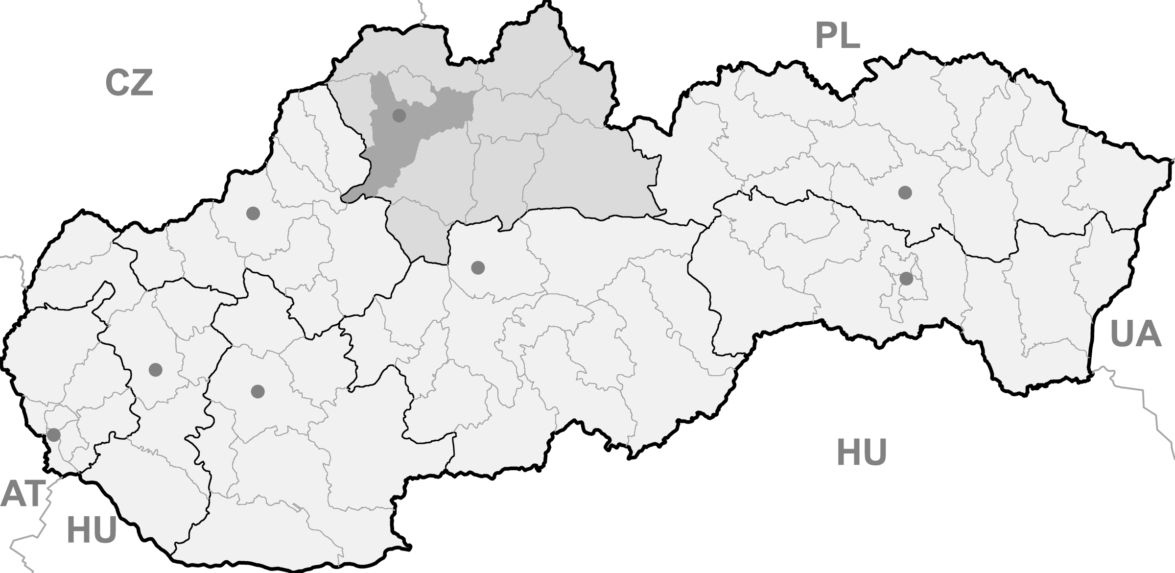 Mapa + English: Map of Slovakia, Zilina district and Zilina Region highlighted