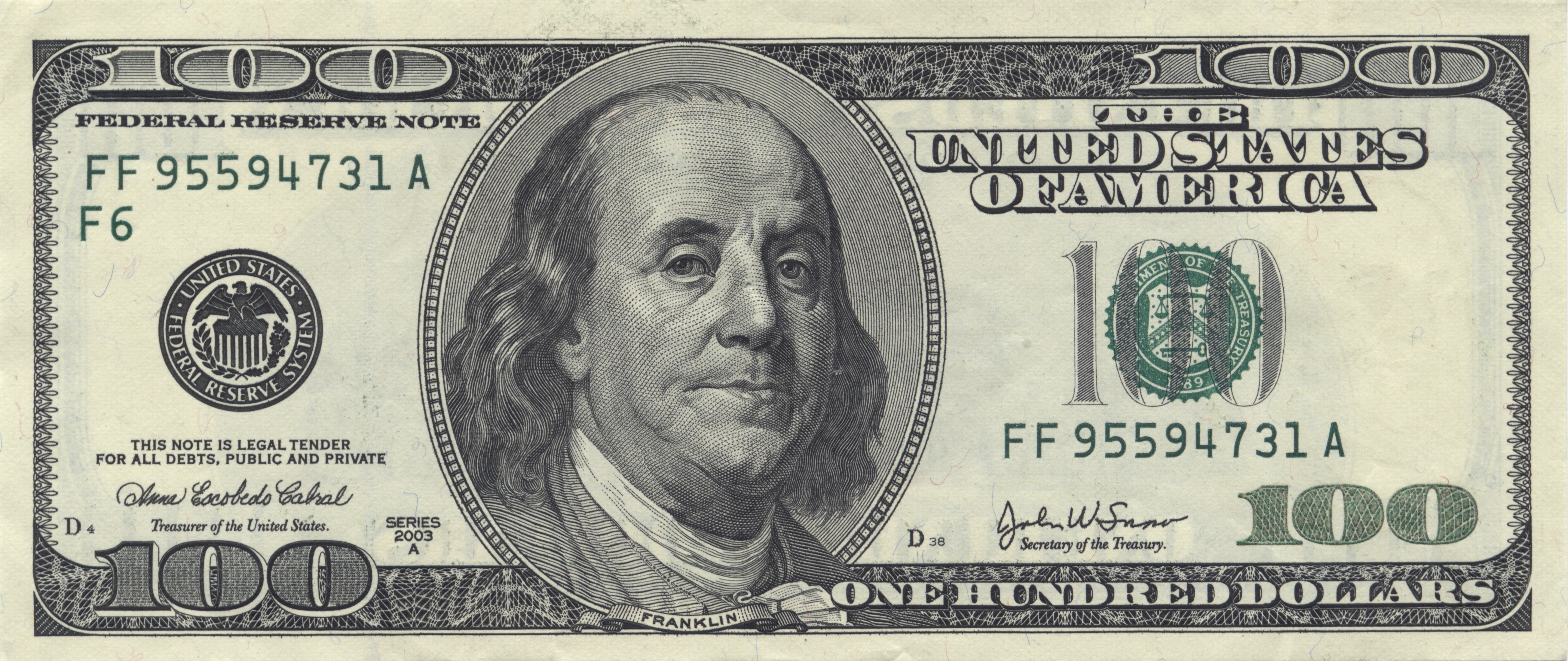 Fotografie + Front of the U.S. $100 Federal Reserve note.