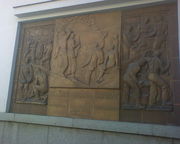 "Brána Šumavy" - umělecká plastika na zdi městské spořitelny