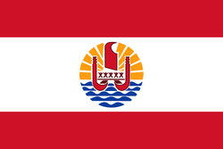 Vlajka Francouzské Polynésie má tři vodorovné pruhy, červený, bílý a červený (1:2:1) a její list tak odpovídá štítu znaku, který vznikl roku 1939, kdy se ještě (do roku 1957) toto ostrovní území nazývalo Francouzská Oceánie. Uprostřed vlajkového listu je kruhový emblém. V něm je na pěti stylizovaných modrých pruzích mořských vln vyobrazený červený, hnědě korunovaný a čelně plávající domorodý člun s plachtou. Na čluně je napříč položená hnědá plošina a na ní stojí pět stylizovaných hnědých lidských postav. Za člunem září deset žlutých slunečních lúčí. Červená barva znamená odvahu, bílá čistotu ideálů a jasnou budoucnost. Vlajka byla zavedená roku 1985.