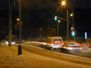 Osmivteřinová expozice postačuje na zachycení noční scény – pohybující se auta jsou ale zcela rozmazaná.