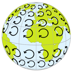 - To, že pohyb balistických střel a družic zakreslený na běžných mapách světa zdánlivě opisuje zakřivenou trajektorii, je zapříčiněno především sférickým tvarem Země. Nejkratší vzdálenost mezi dvěma body na zemském povrchu obvykle není na takových mapách rovná úsečka. Každá dvourozměrná mapa nevyhnutelně zkresluje zakřivený (trojrozměrný) zemský povrch. Typicky (například v běžně používaném Mercatorovu zobrazení) se zkreslení zvyšuje v blízkosti pólů. Zakřivení trajektorie by se na mapách objevilo i kdyby se Země neotáčela. Coriolisův efekt se na balistických raketách pochopitelně projevuje, ale na mapách je mnohem méně zřetelný než zkreslení použitého zobrazení.