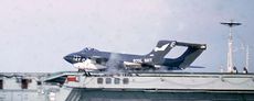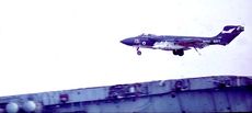 Sea Vixen těsně před dosednutím na palubu letadlové lodi HMS Eagle.