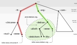 Prostor doménových jmen tvoří strom. V kořeni tohoto stromu je speciální vyhrazené prázdné doménové jméno. Pod tímto kořenem jsou uspořádány všechny domény nejvyššího řádu. V další úrovni jsou domény 2. úrovně, atd. (viz obrázek)