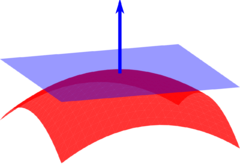 Je-li rovina dána rovnicí \(ax+by+cz+d=0\), potom je její normálový vektor n roven \((a,b,c)\). Je-li příslušně hladká plocha dána rovnicemi