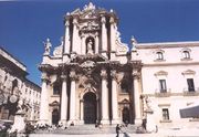 Dóm původně to byl Athénin chrám, který byl postaven po vítězství nad Kartágem v roce 480 př. n. l. Tento chrám byl postaven na návrší ostrova Ortigie. Byla na něm socha bohyně s pozlaceným štítem, který sloužil přes den mořeplavcům. V 7. století se přeměnil na baziliku. Zemětřesení v letech 1542 a 1693 zbouralo některé části chrámu. V letech 1728–1757 bylo postaveno barokní západní průčelí od Andrei Palmy z Palerma.