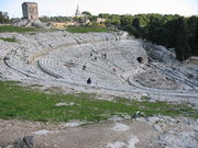 Řecké divadlo patří průměrem (asi 138 metrů) k největším antickým divadlům. Bylo postaveno v 5. století. Kamenné tribuny jsou rozděleny na devět sektorů. Divadlo mohlo pojmout 15 000 diváků. Z vrchních tribun je také pěkný výhled na celé Syrakusy.